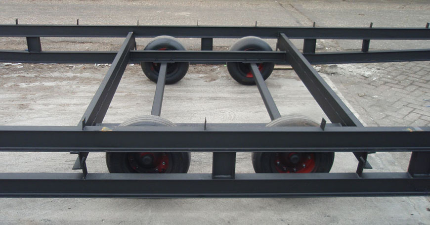 Standaard monteren wij wielen in de maat 500/8 of 650/10. Andere maten zijn mogelijk. Tandemassers zijn gangbaar, maar ook enkele as of 3-assers worden geleverd, geschikt voor verschillende zwaartes.